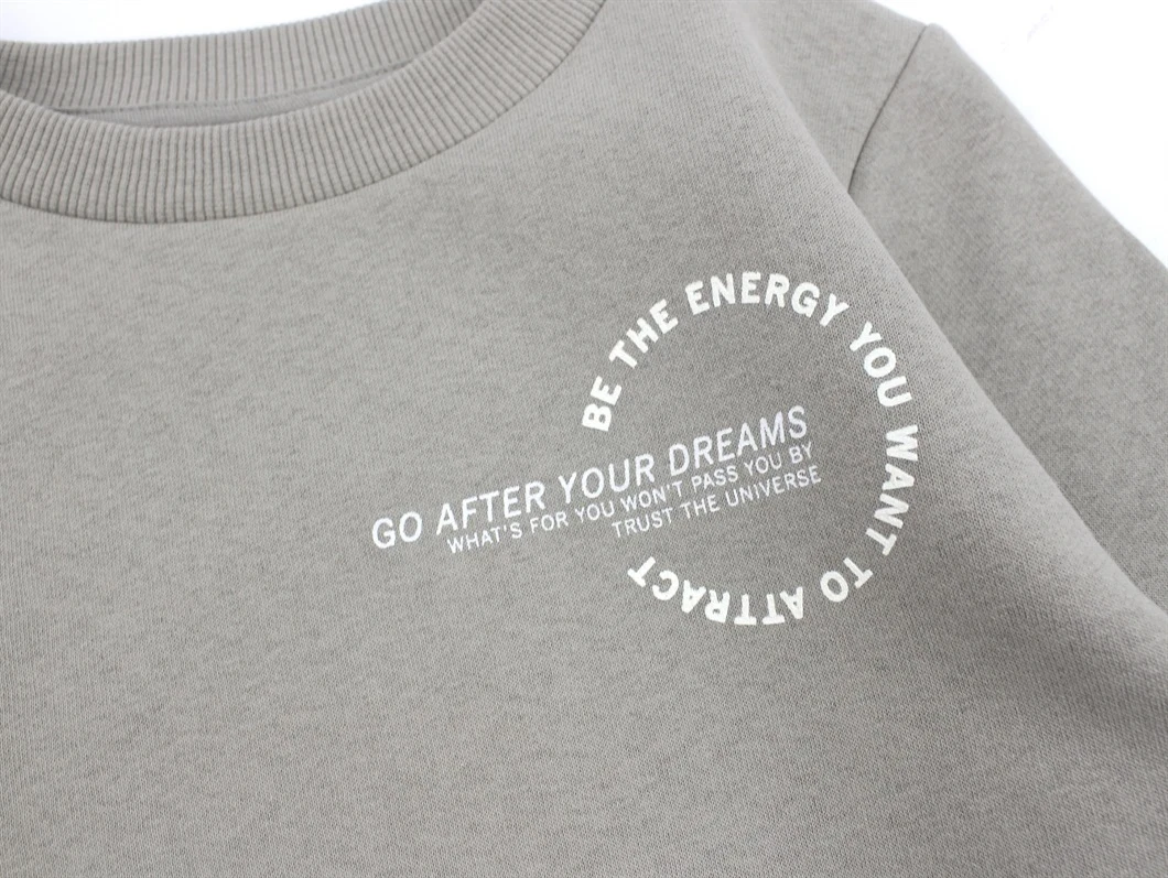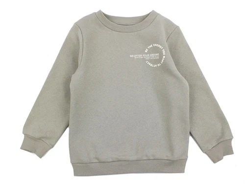 Sweatbluse i farven london fog med lille tekstprint fra Name It.