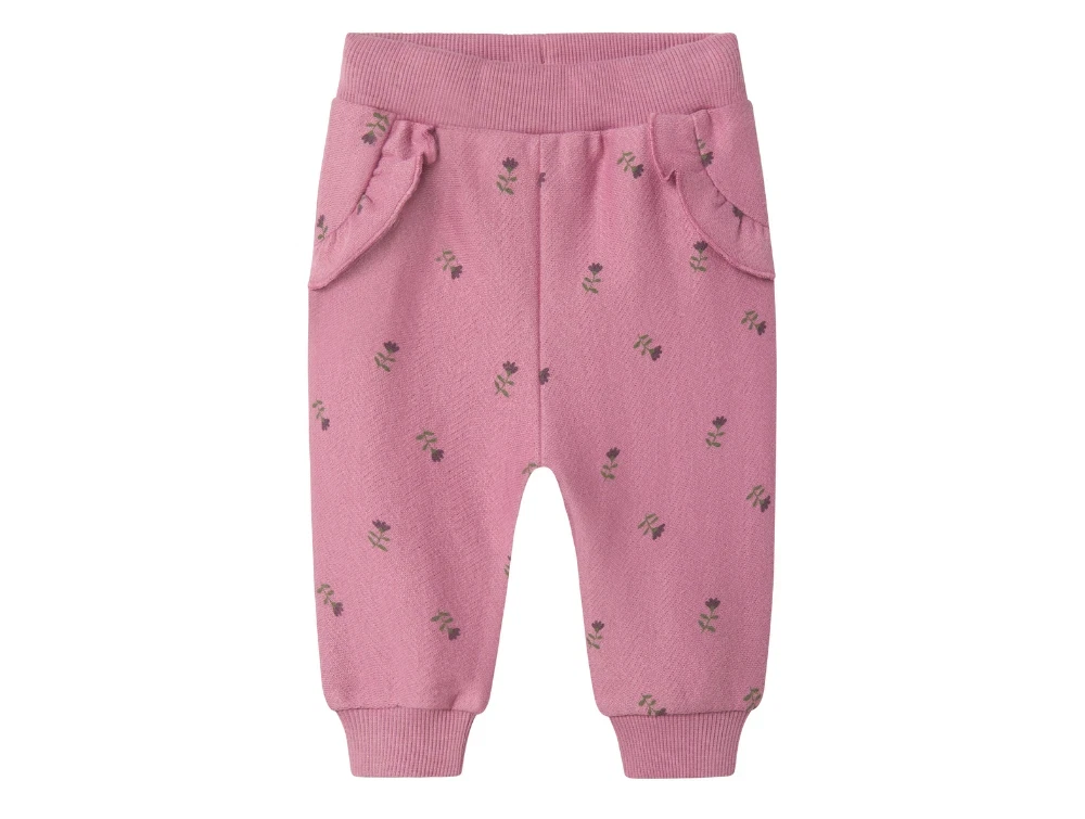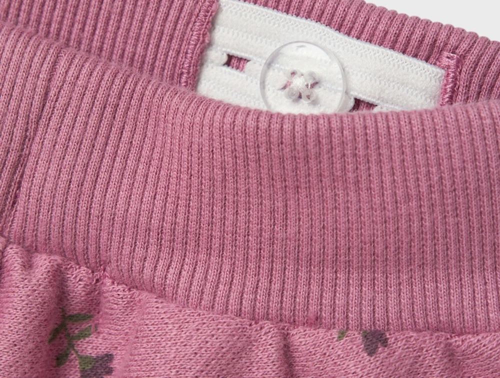 Sweatbukser i farven mauve orchid med blomsterprint fra Name It.