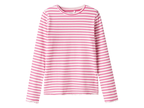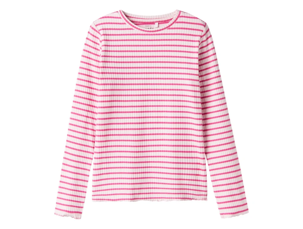 Stribet langærmet top i farverne jet stream og mauve orchid fra Name It.