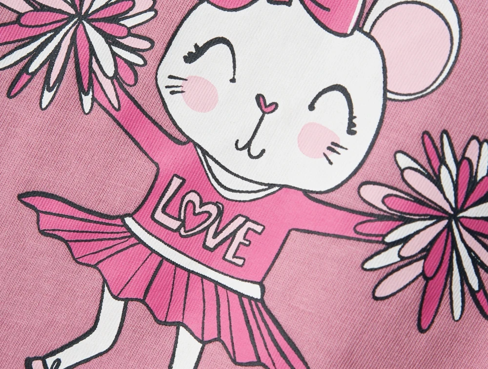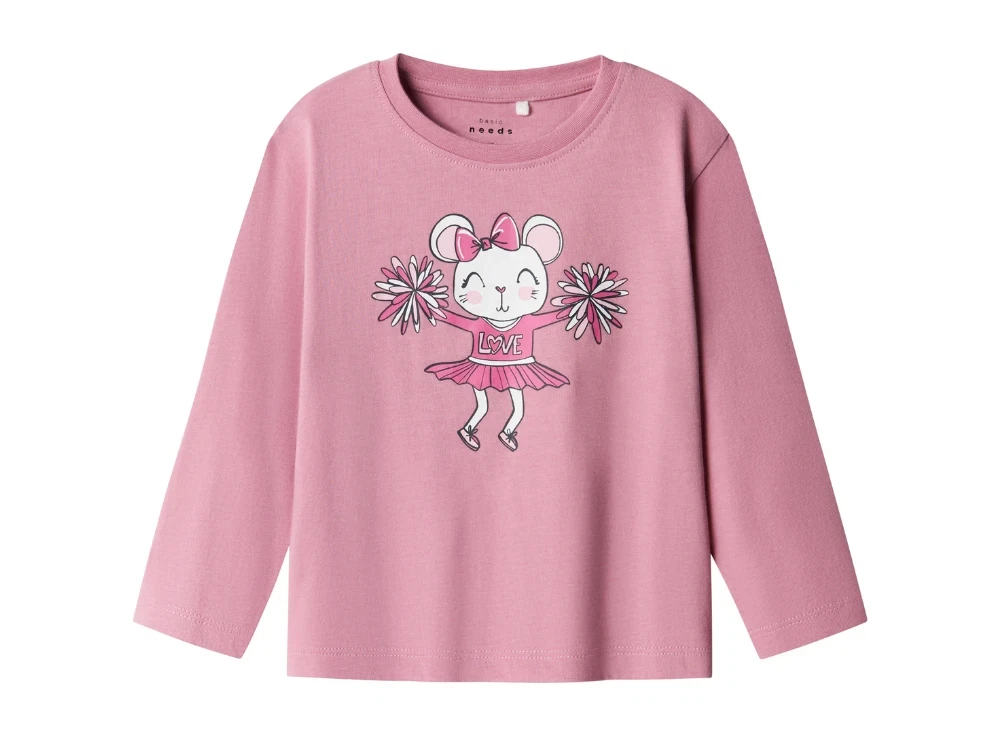 Langærmet top i farven mauve orchid med dansende mus fra Name It.