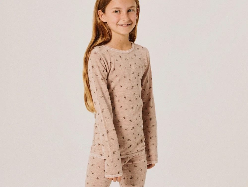 Name It merinould bluse meleret rosa med blondekant og blomsterprint