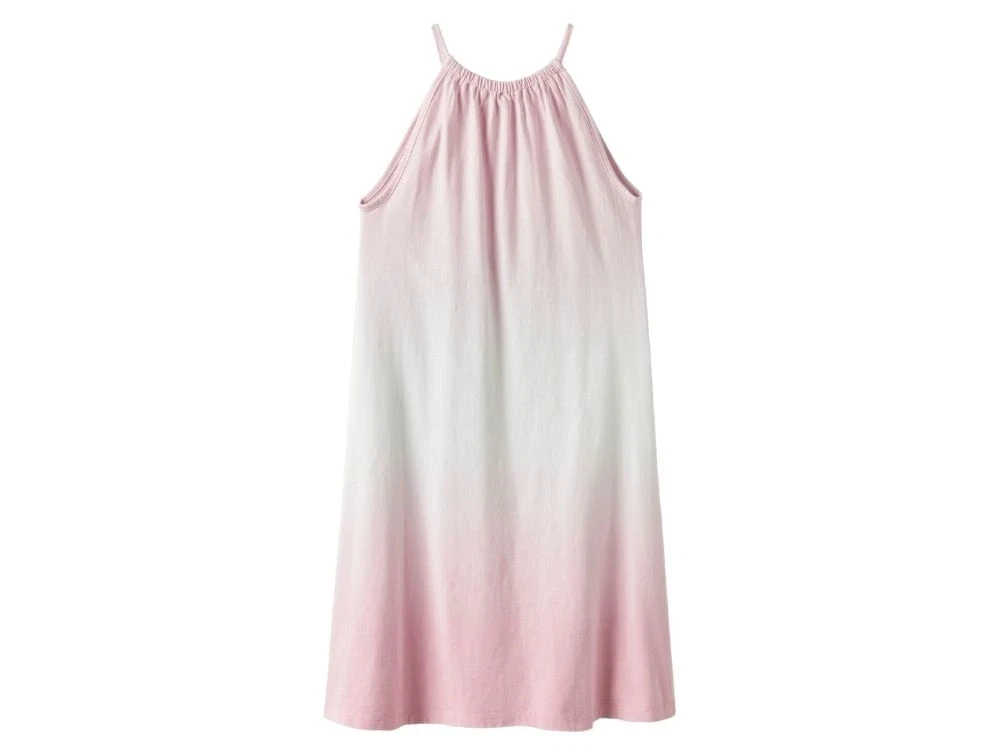 Midi dress i lys rosa og hvide nuancer fra Name It med fint fald og buet kant forneden.