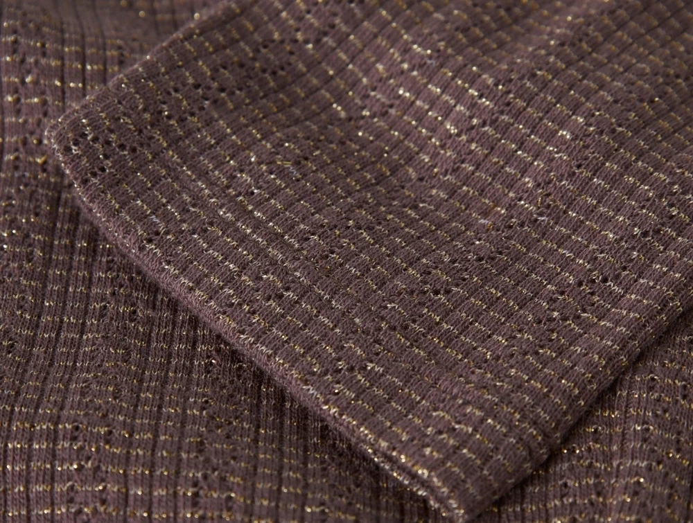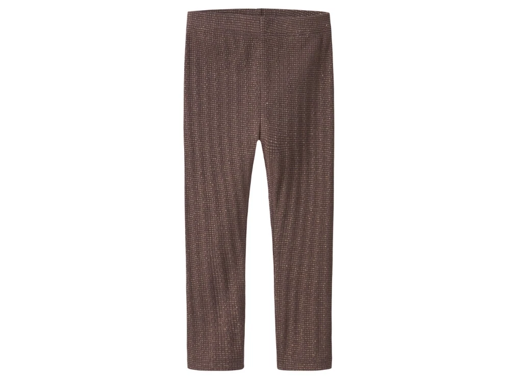 Leggings i brun nuance (peppercorn) fra Name It MINI med smuk glimmerstruktur i ribstrik. En blød og elastisk model, der kombinerer komfort med et feminint udtryk.