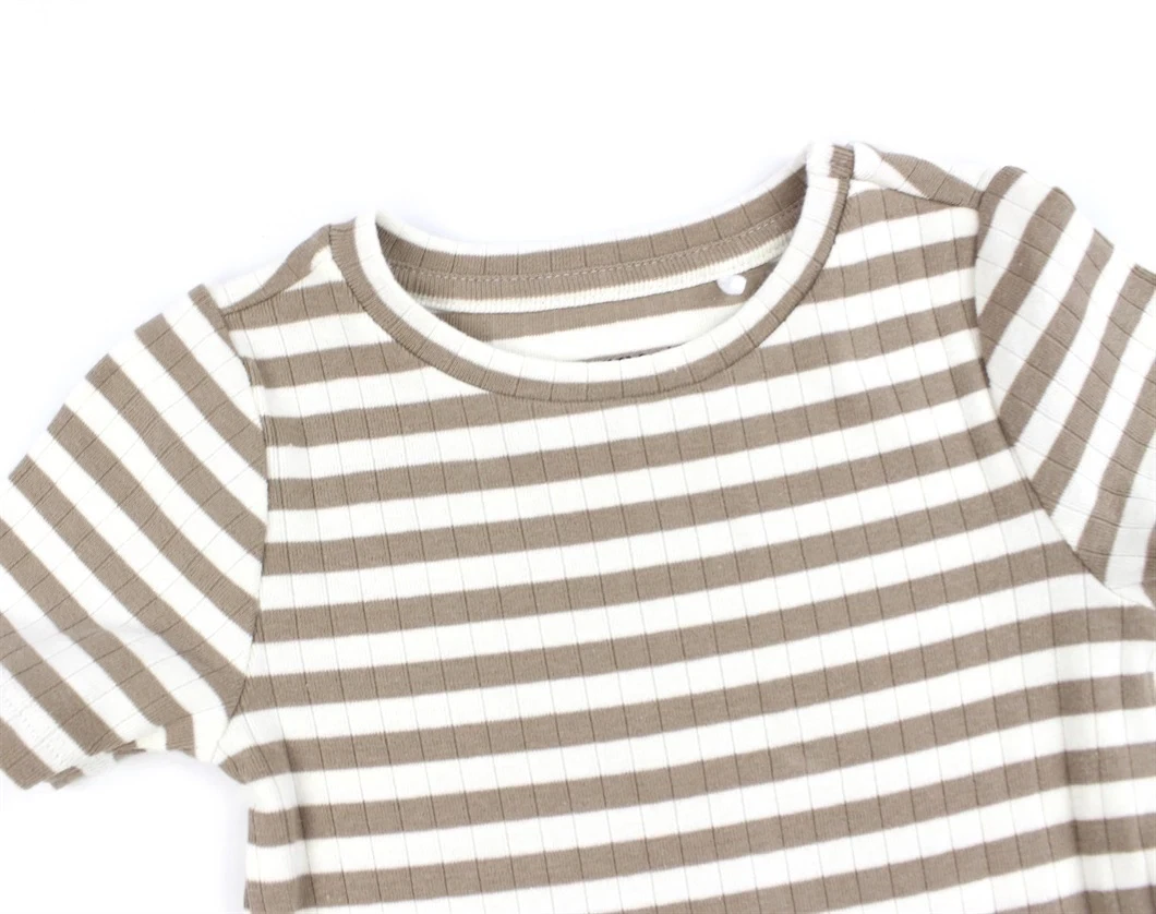Kortærmet top med striber i farven mocha meringue fra Name It.