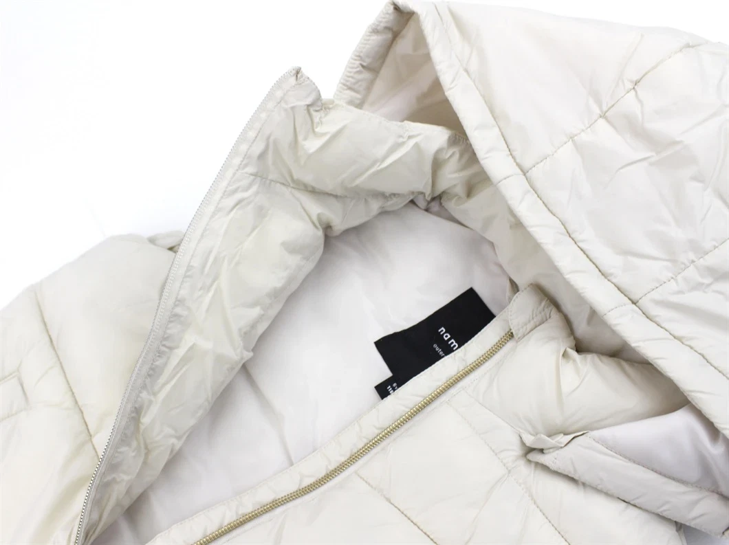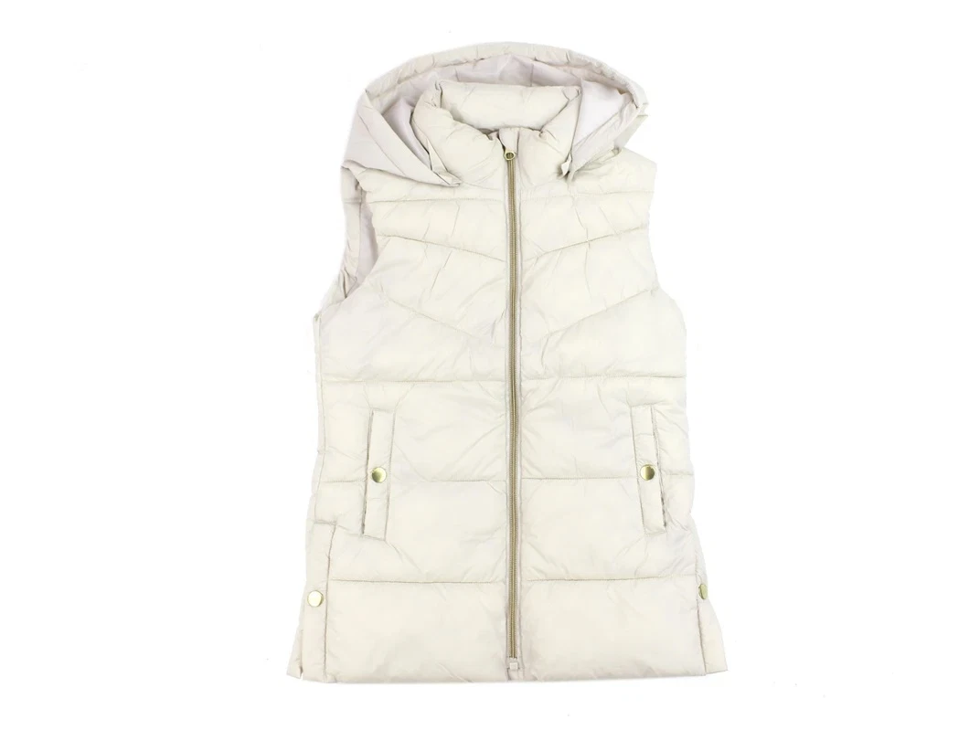 Vesten lukkes med lynlås og har to lommer samt en aftagelig hætte med trykknapper.