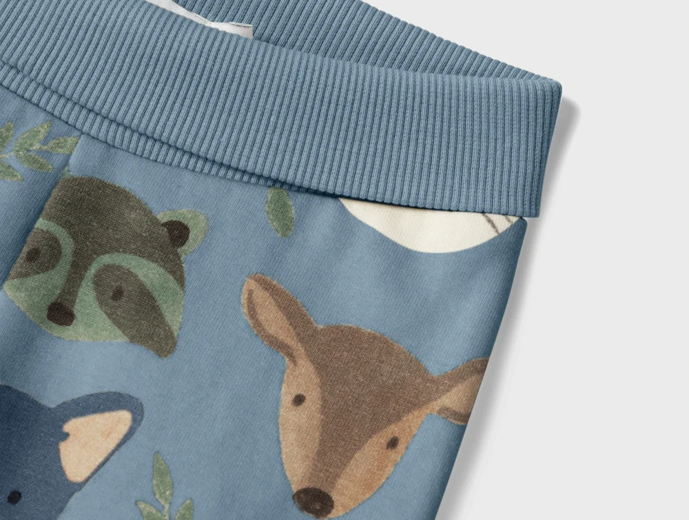 Sweatbukser i farven mountain spring med dyreprint fra Name It.