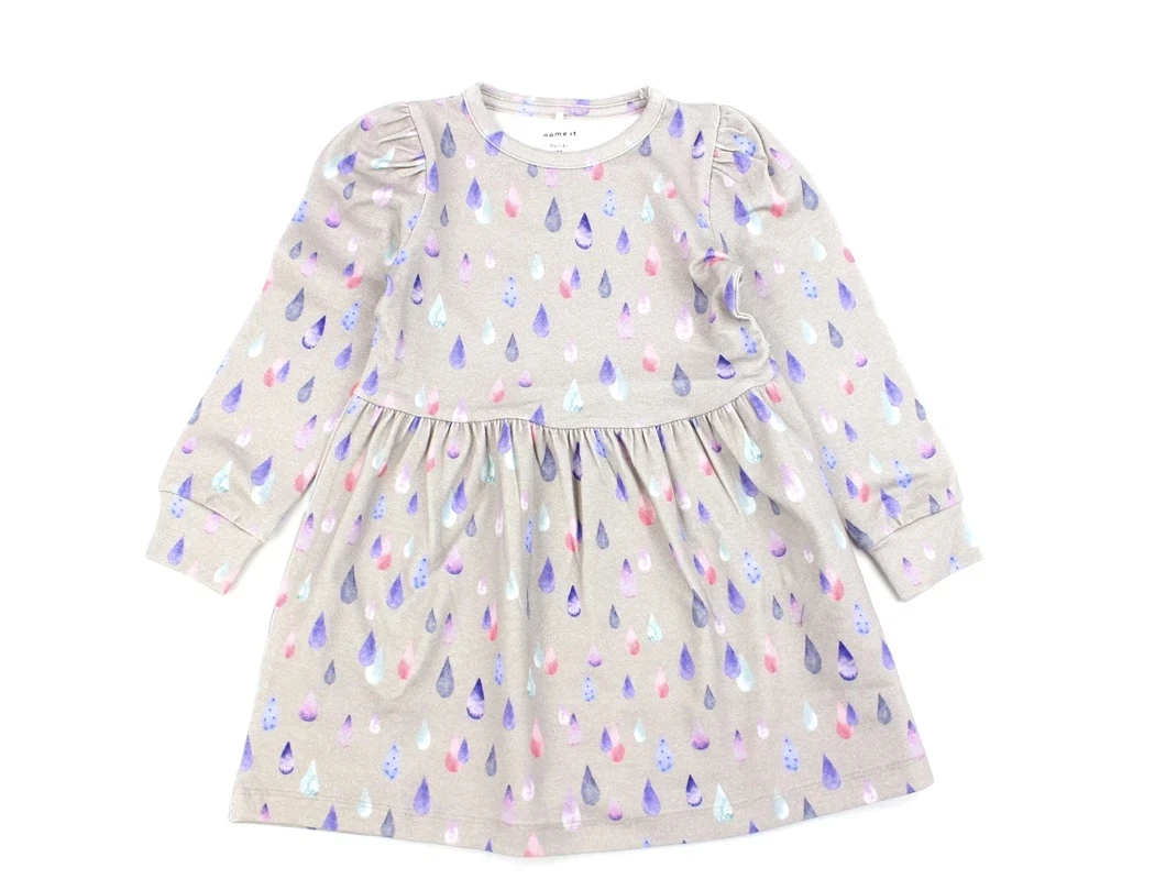 Kjole i farven nacreous cloud med skønt print fra Name It.
