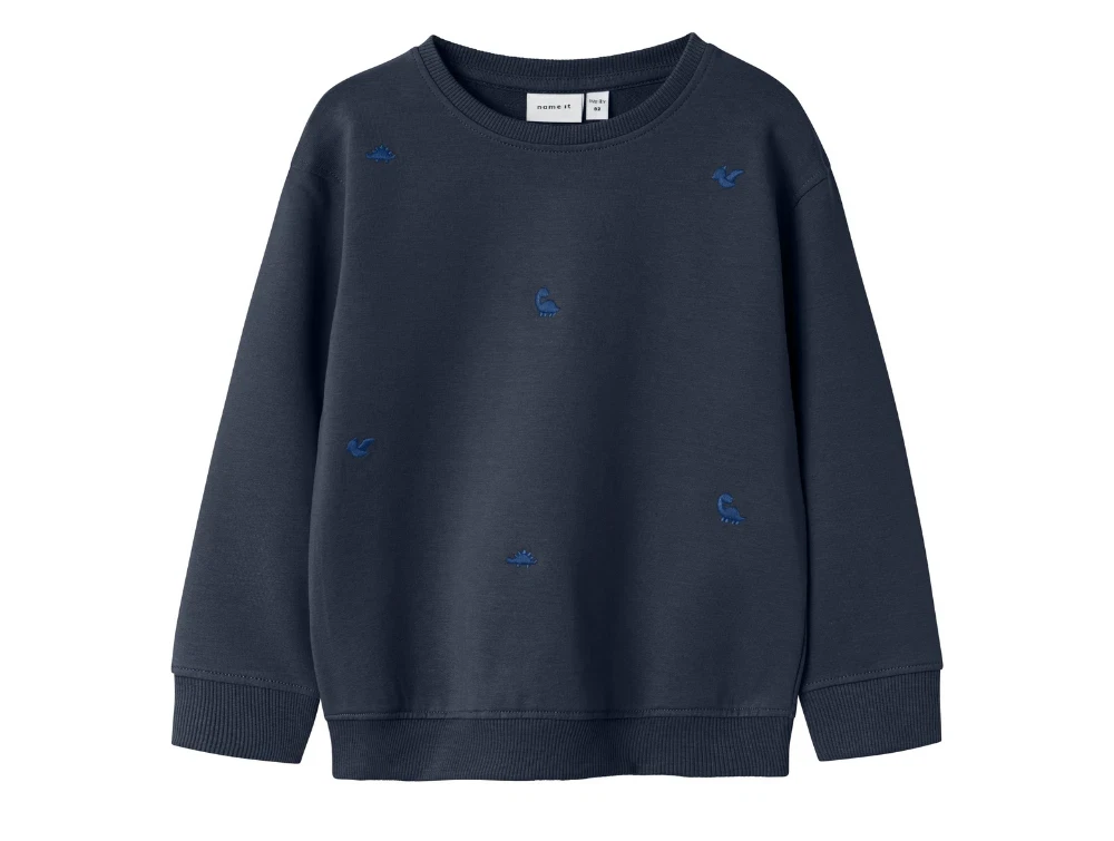 Sweatbluse i farven navy blazer med dinobroderi fra Name It.
