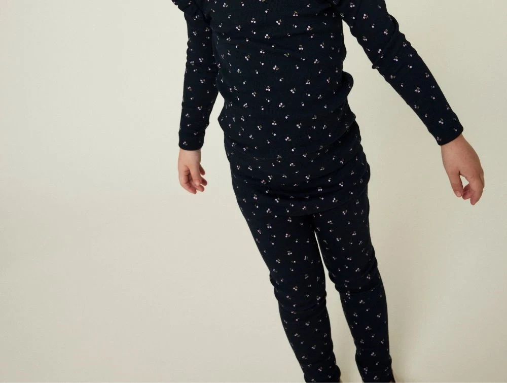Leggings i farven navy blazer med småt kirsebærprint fra Name It.