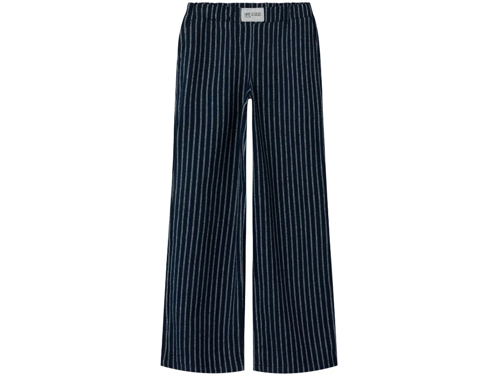 Afslappede brede bukser med pyjamas look i farven navy blazer med striber fra Name It.