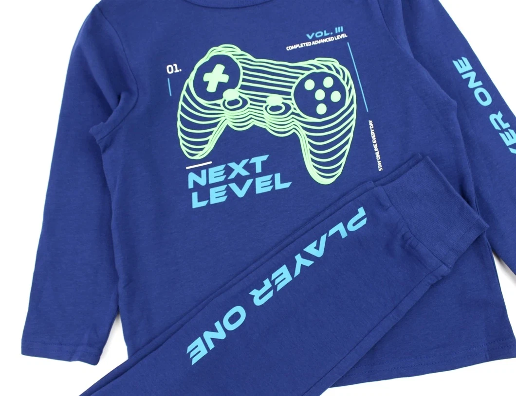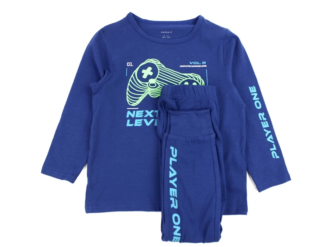 Pyjamas i farven navy peony med gaming-print fra Name It.
