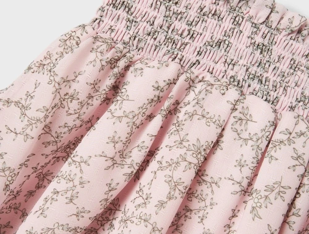 Nederdelen er designet til børn og har en elastisk talje, der giver en god og fleksibel pasform. Det vævede stof kombineret med det fine blomsterprint skaber et friskt og sommerligt udtryk, perfekt til varme dage og lette outfits.