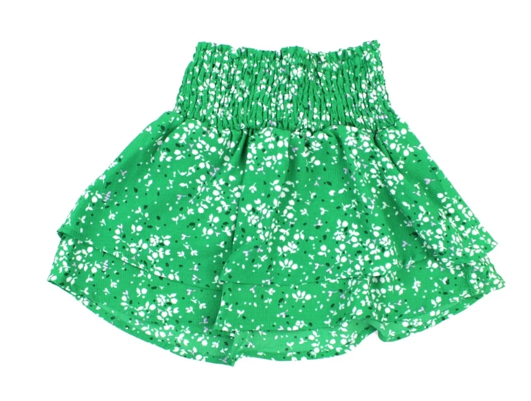 Nederdel i farven jolly green med blomsterprint fra Name It.