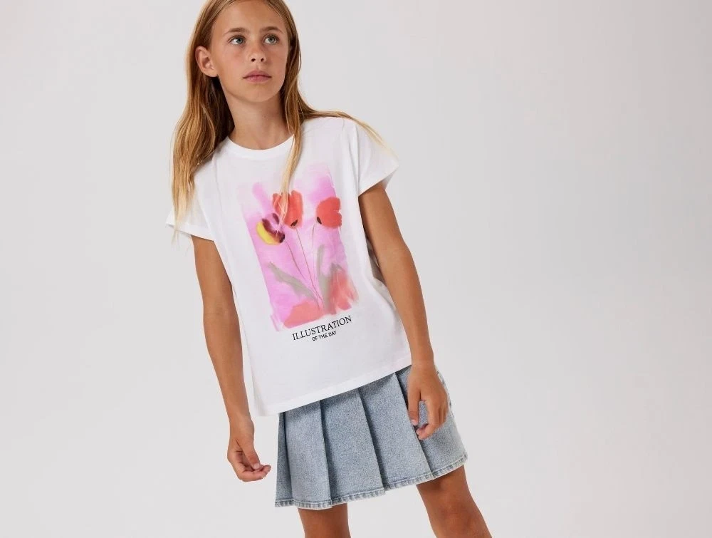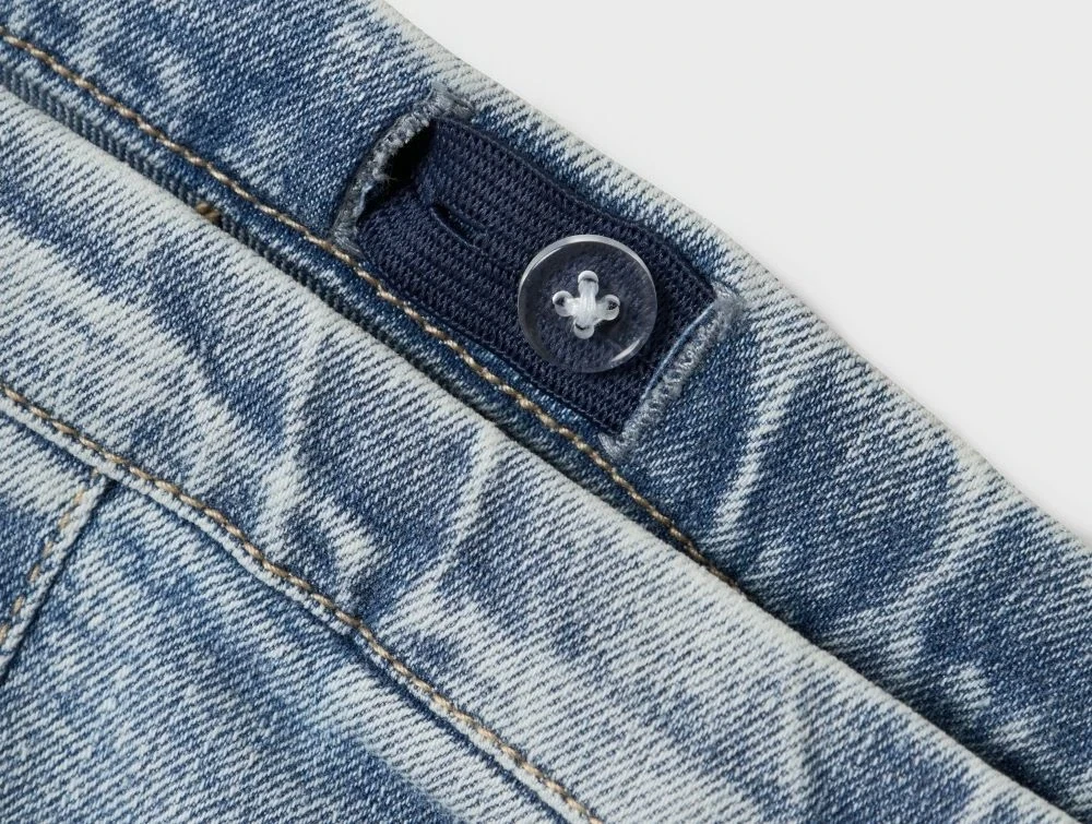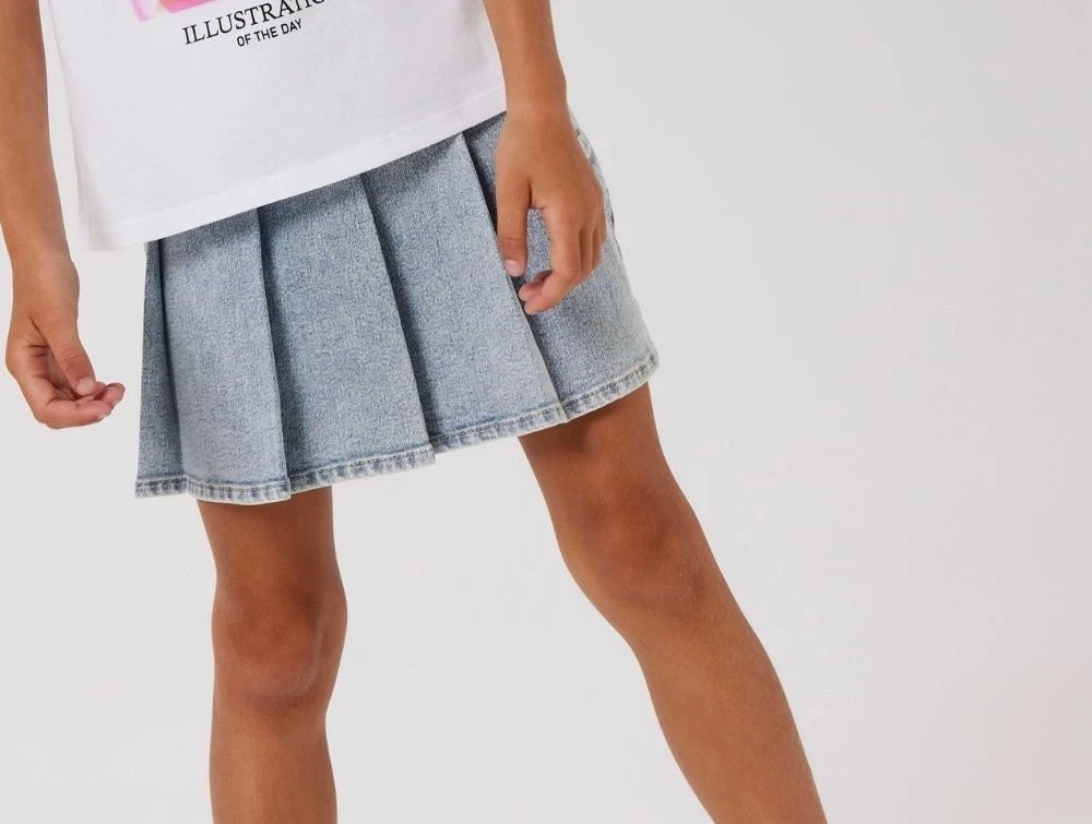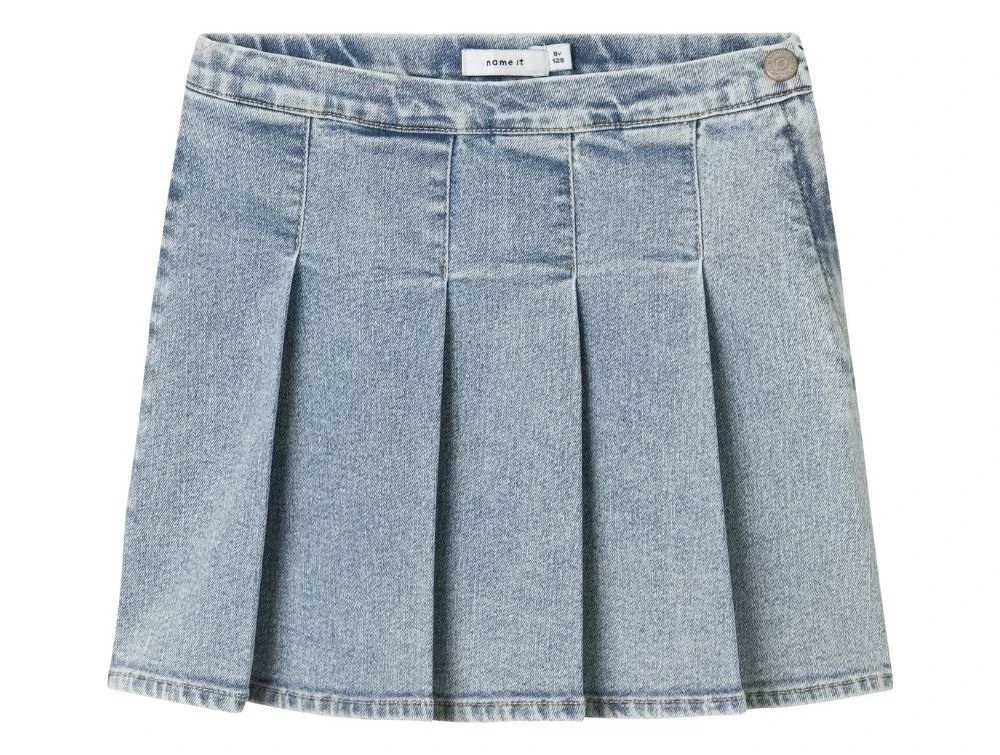 Kort denimnederdel fra Name It med plisserede detaljer og justerbar talje.