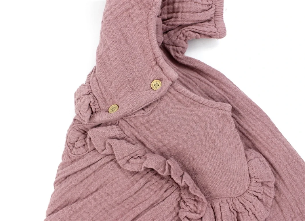 Skøn top med flæser og pufærmer i muslin-kvalitet i farven nostalgia rose fra Name It.
