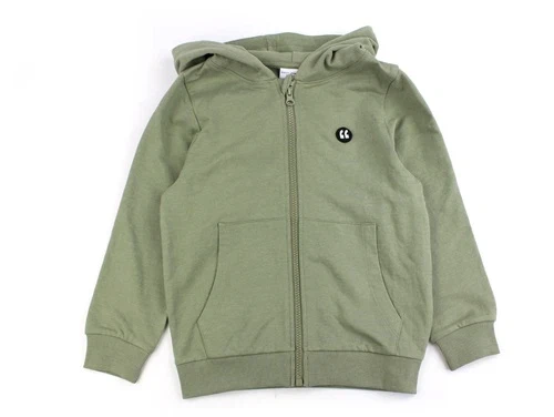 Cool sweatcardigan i farven oil green med lynlås og hætte fra Name It.