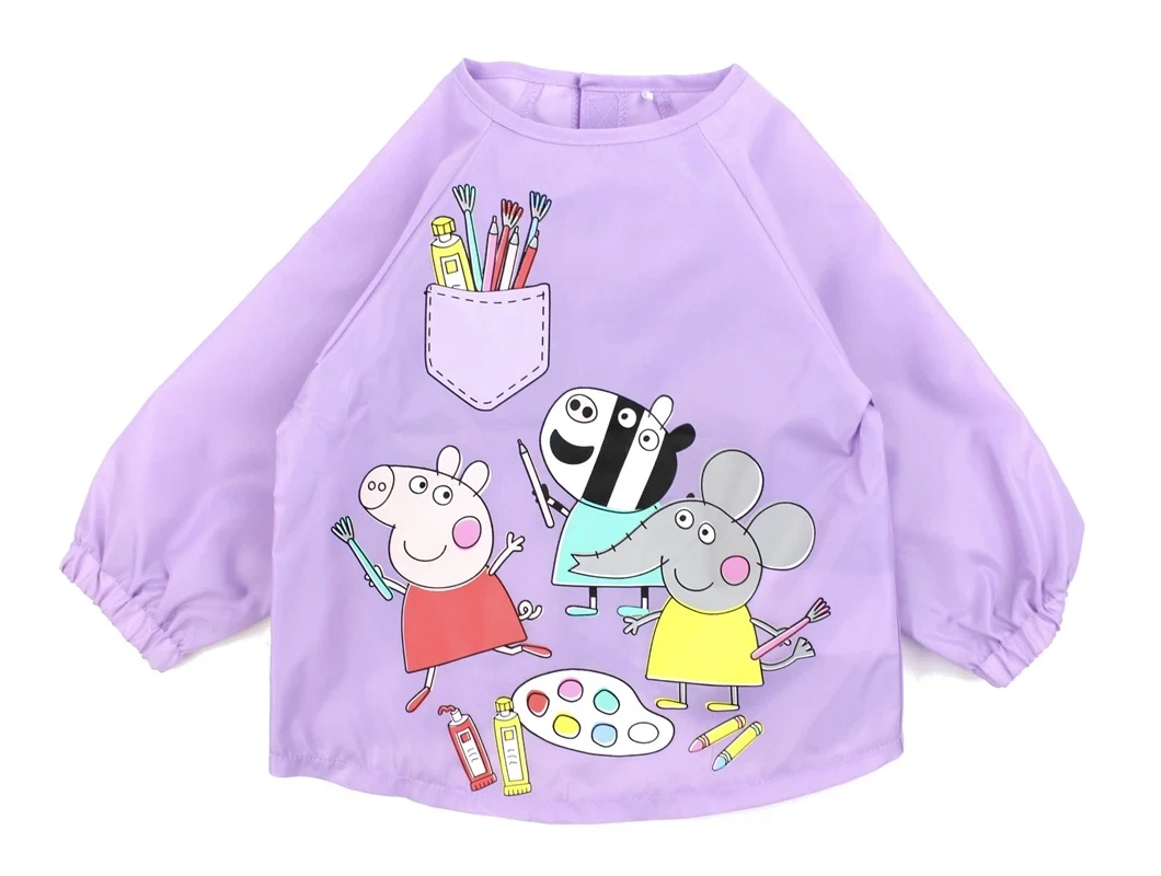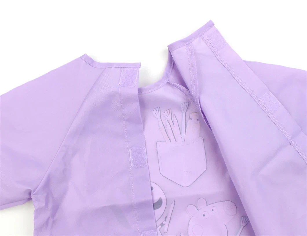 Forklædet lukkes nemt med velcro i ryggen, hvilket gør det let at tage af og på. De lange ærmer giver forklædet ekstra beskyttelse mod madpletter og sørger for, at dit barn kan spise uden nemt at få mad på tøjet.