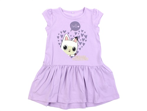 Kjole i farven orchid bloom med Gabby-print fra Name It.