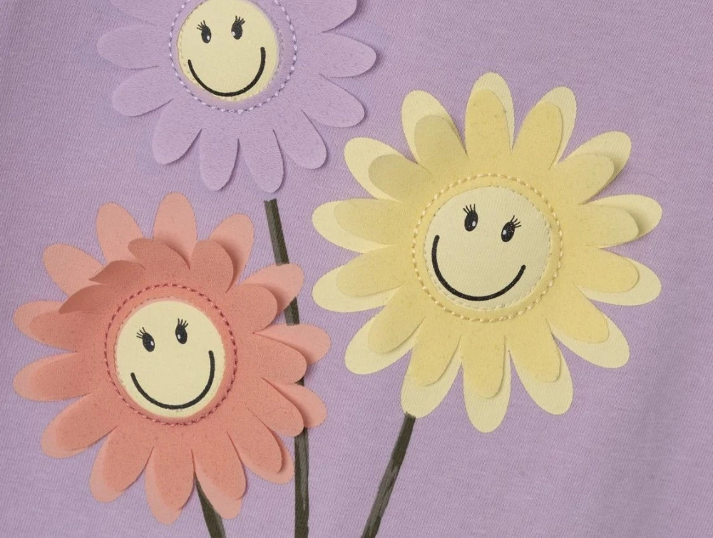 Top i farven orchid bloom med blomsterapplikationer fra Name It.