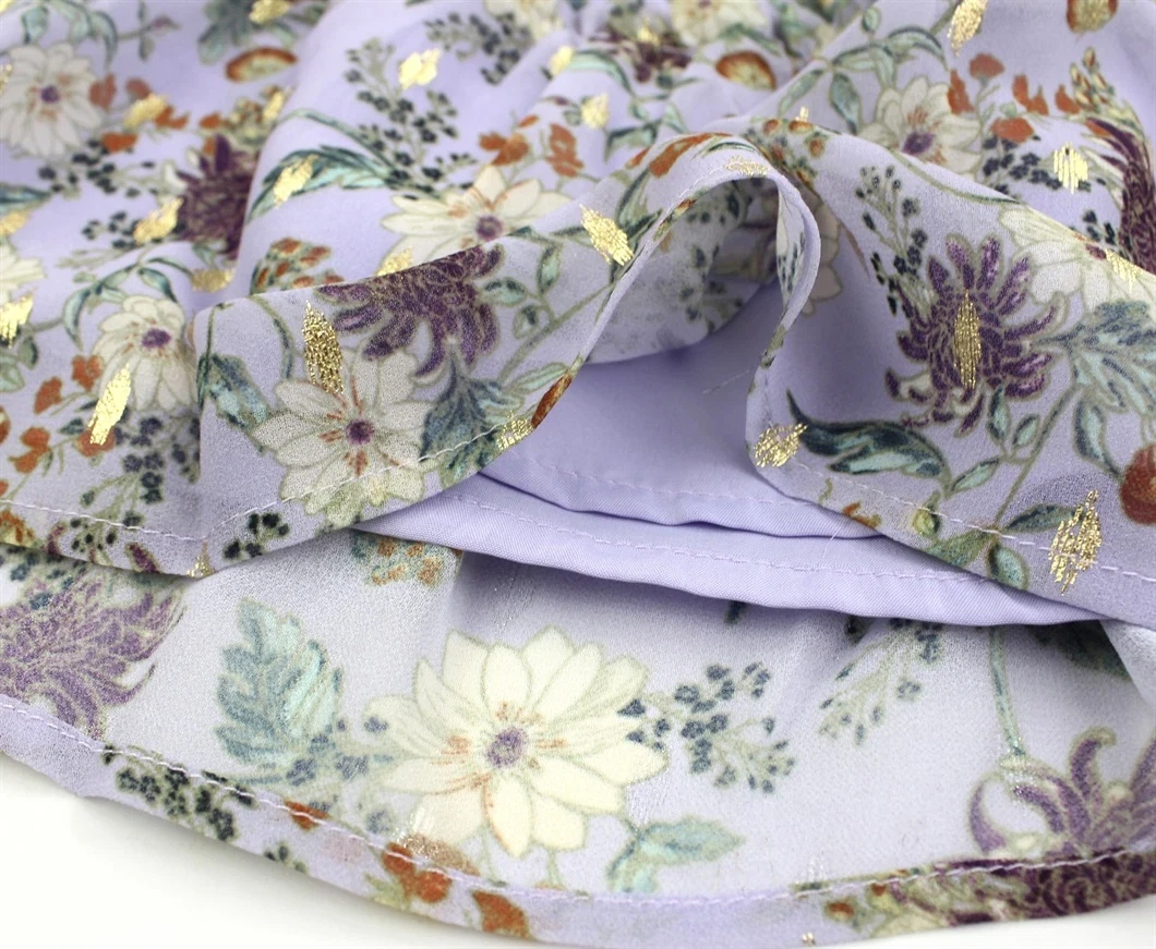 Nederdel i farven orchid petal med blomsterprint og guldfarvet glitter fra Name It.