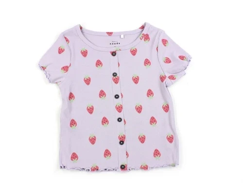 Skøn top med i farven orchid petal med jordbærprint fra Name It.