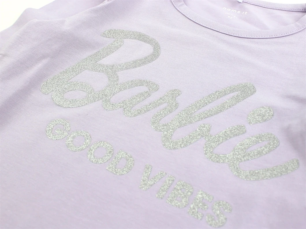 Langærmet t-shirt i farven orchid petal med glimmer Barbie-print fra Name It.