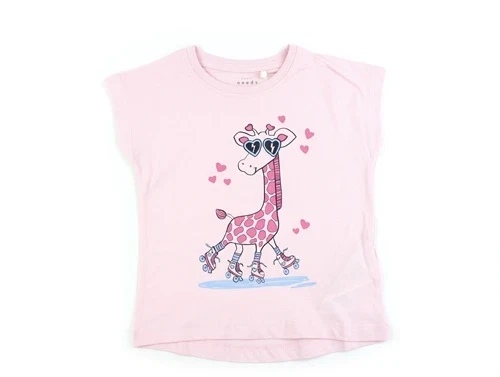 Top/t-shirt i farven parfait pink med giraf-print fra Name It.