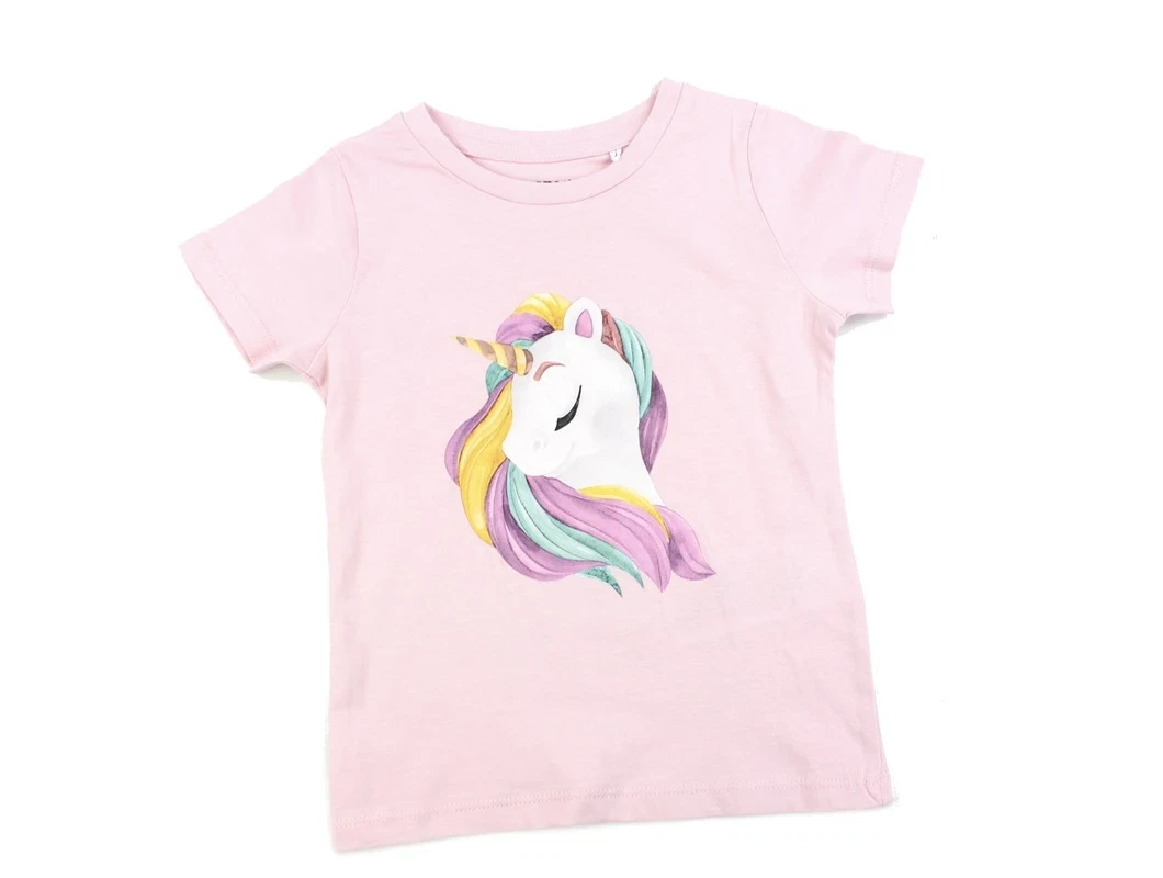 T-shirt i farven parfait pink med sødt enhjørningprint fra Name It.