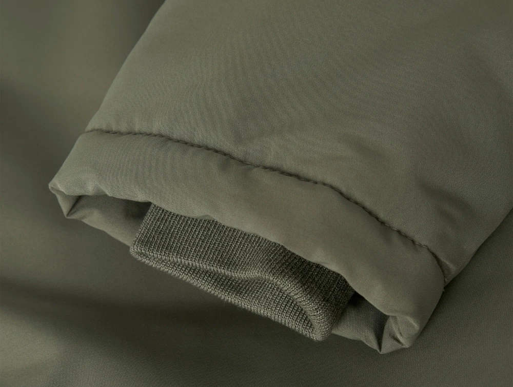 Name It parka jakke dusty olive til børn med aftagelig hætteDetalje af fleecefoer i hætte på Name It parka dusty oliveBadge på ærmet af Name It parka dusty oliveRibkant ved ærme på Name It parka dusty oliveBagside af Name It parka jakke dusty olive