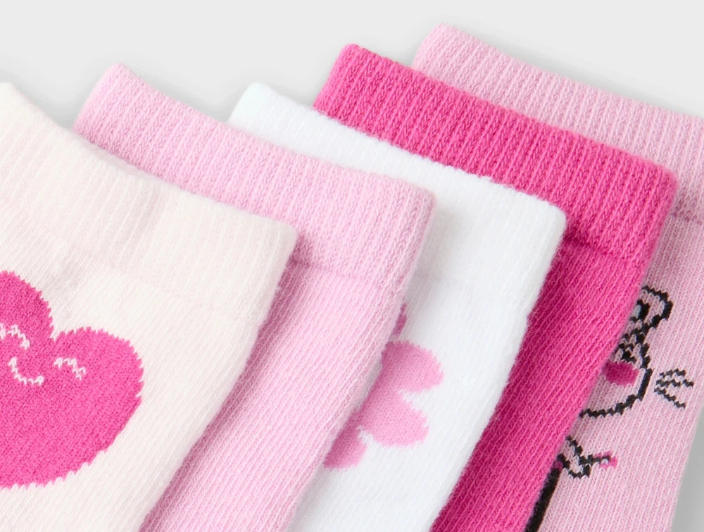 5 par bomuldsstrømper i forskellige farver og med forskellige motiver fra Name It.