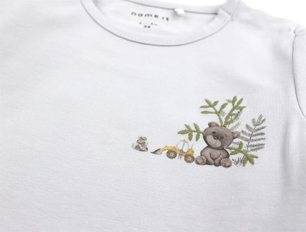 Body i farven pearl blue med bamseprint og broderi fra Name It.