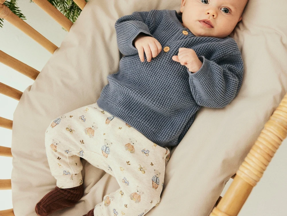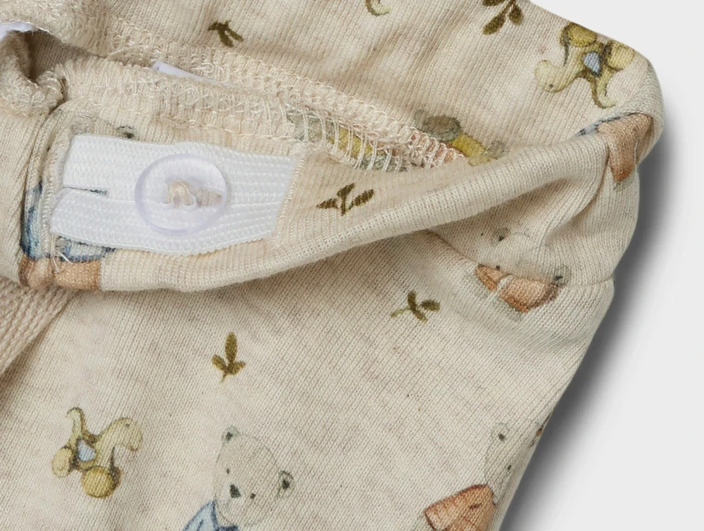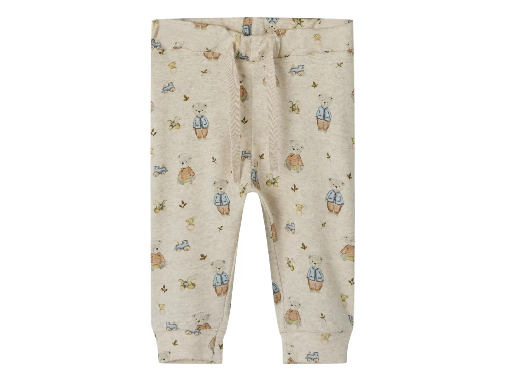 Bukser i farven peyote melange med bamseprint fra Name It.