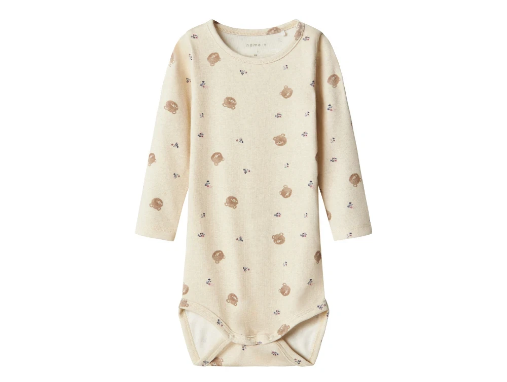 Body i farven peyote melange med med bamse- og blomsterprint fra Name It.