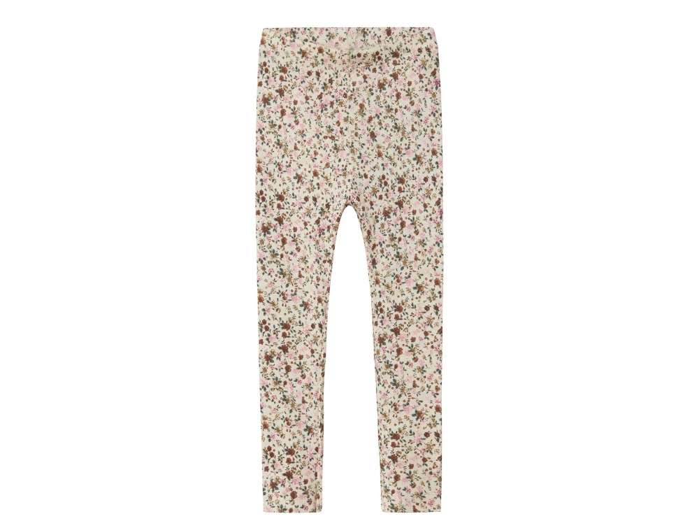 Leggings i farven peyote melange med blomsterprint fra Name It.