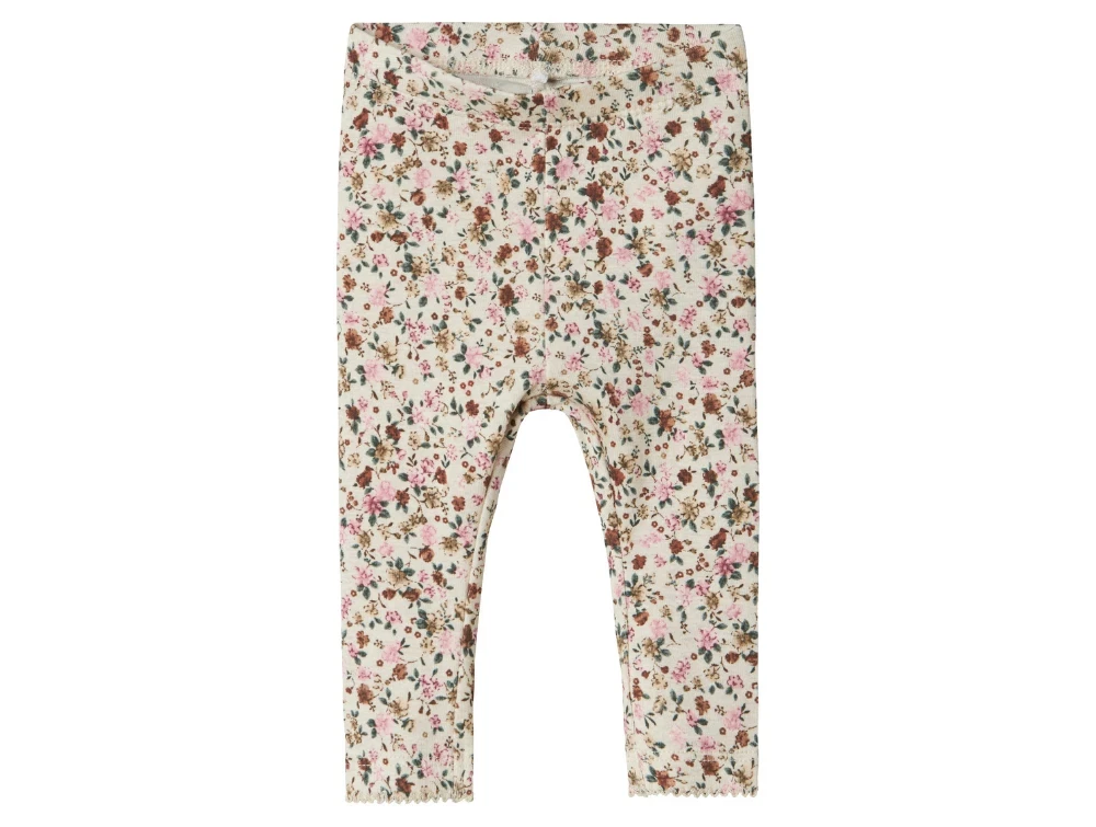 Leggings i farven peyote melange med blomsterprint fra Name It.