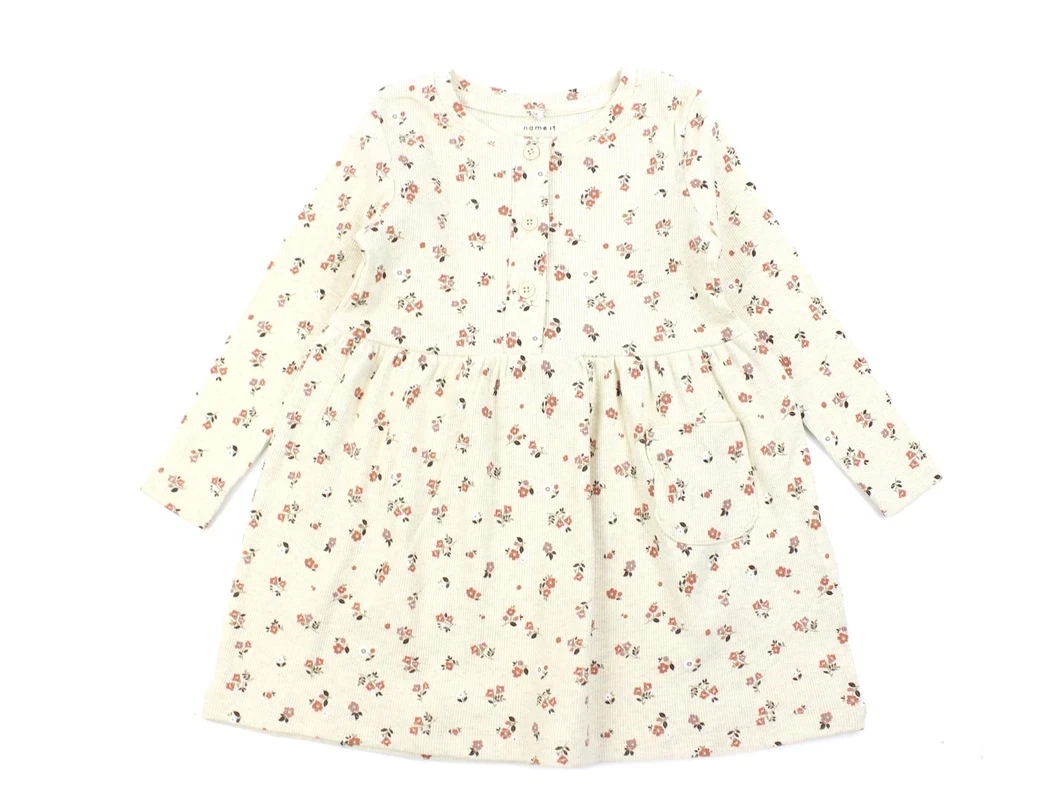 Kjole i farven peyote melange med blomsterprint fra Name It.