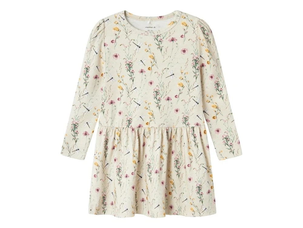 Langærmet kjole i farven peyote melange med blomsterprint fra Name It.