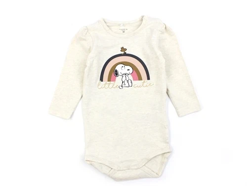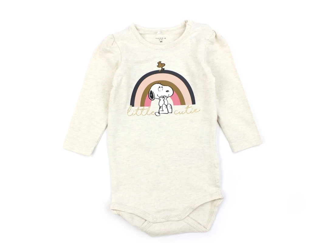 Bodystocking i farven peyote melange med Snoopy print og guldglimmer fra Name It.