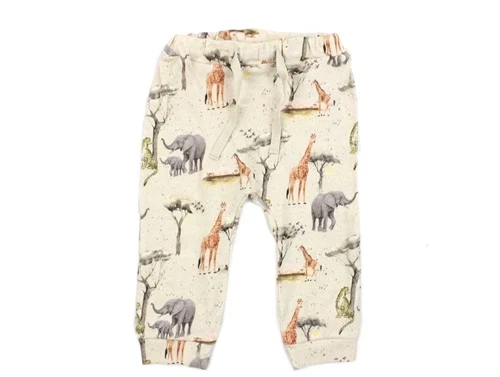 Bløde bukser i farven peyote melange med savannen-print fra Name It.