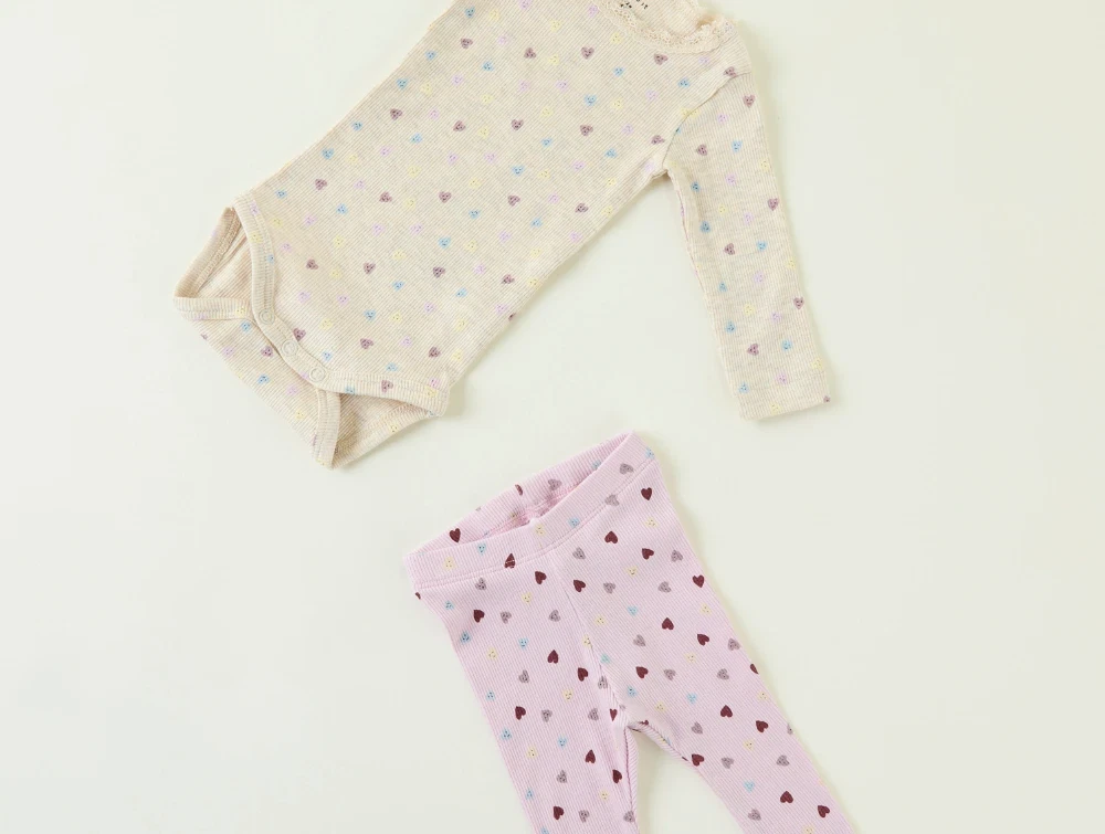 Klassisk rib-body i farven peyote melange med hjerter fra Name It.