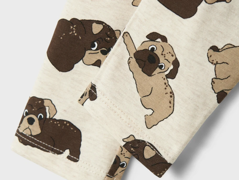 Leggings/long johns i farven peyote melange med hundeprint fra Name It.