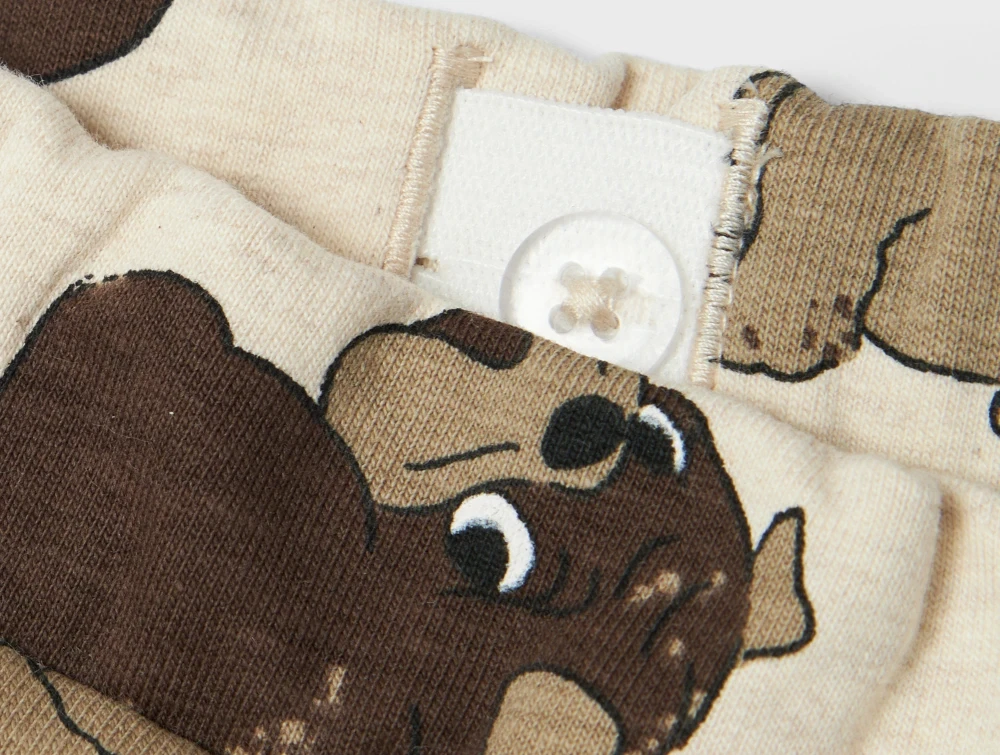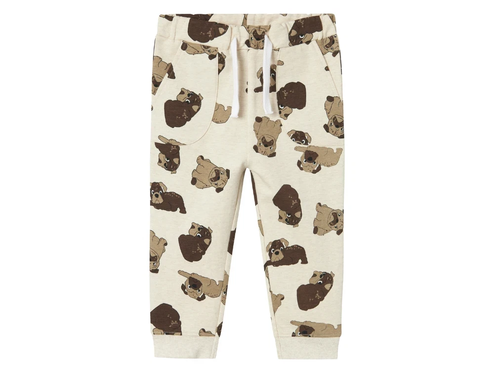 Sweatbukser i farven peyote melange med hundeprint fra Name It.