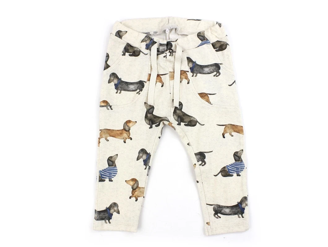 Bløde bukser i farven peyote melange med hunde-print fra Name It.