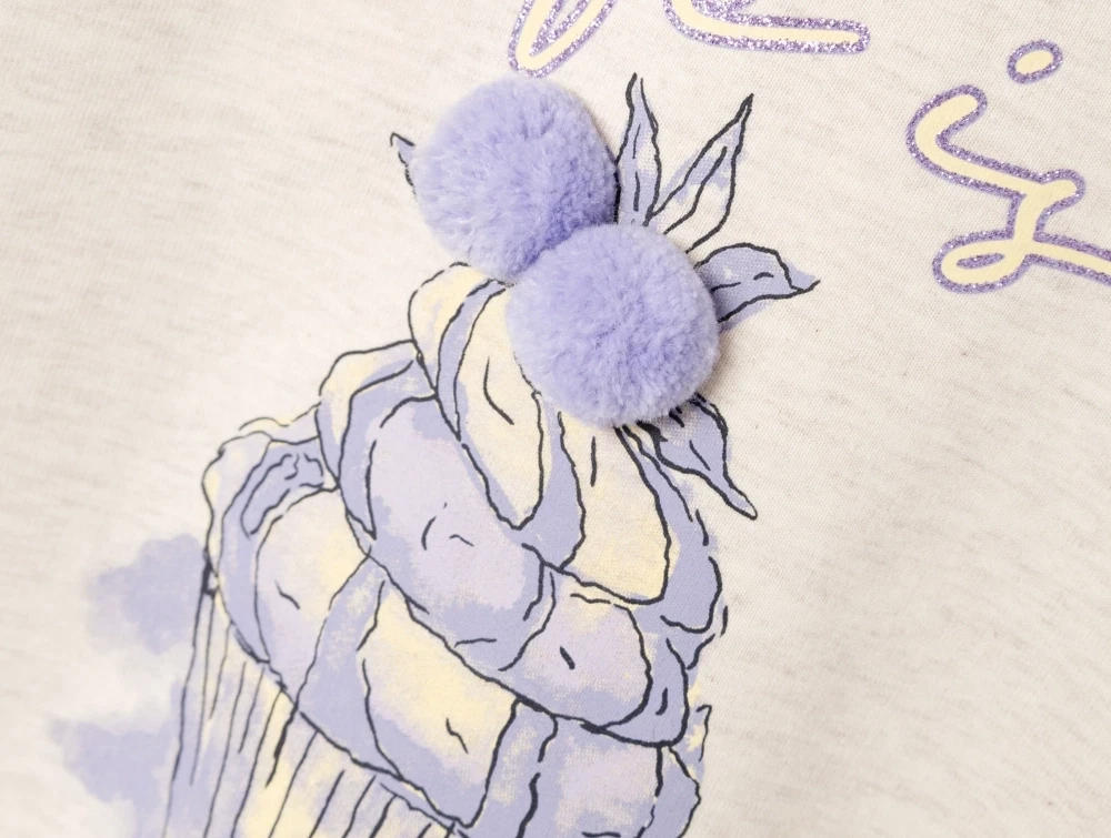 Sweatshirt i farven peyote melange med skønt print, glitterdetaljer og pom pom'er fra Name It.