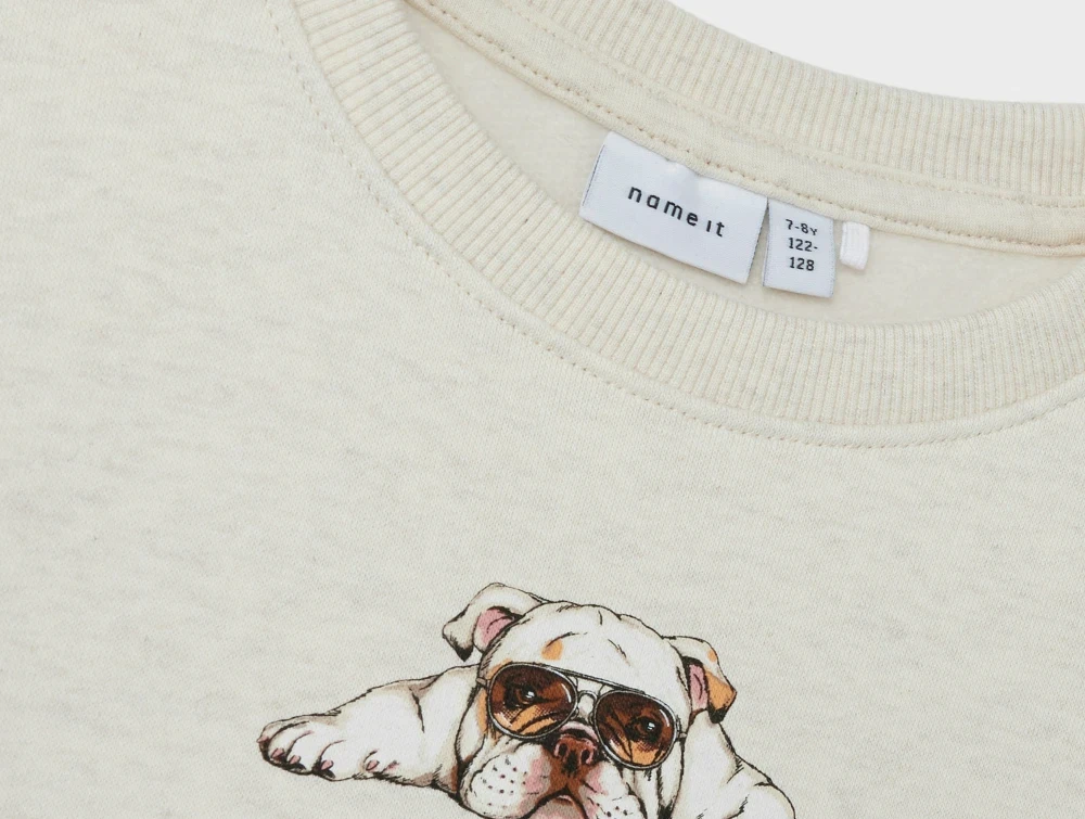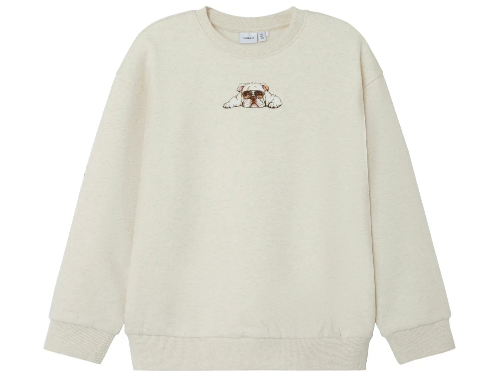 Sweatshirt i farven peyote melange med print af afslappet hund fra Name It.