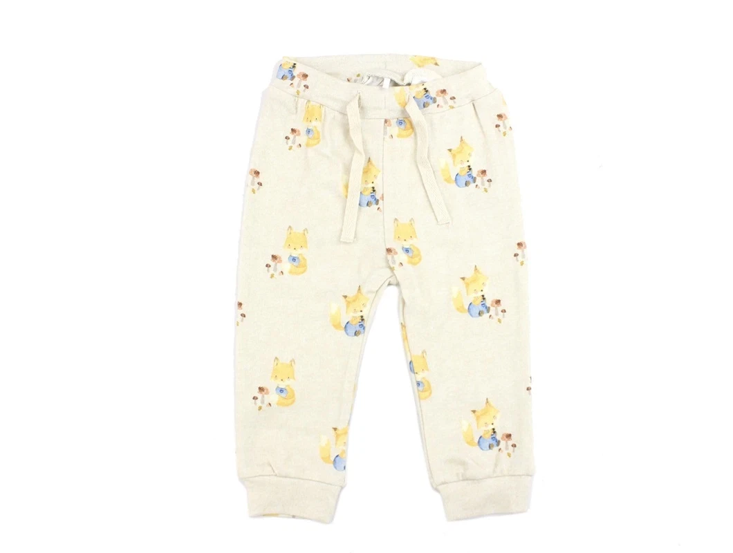 Bukser i farven peyote melange med print af ræve fra Name It.