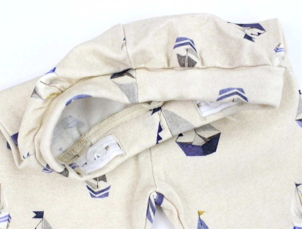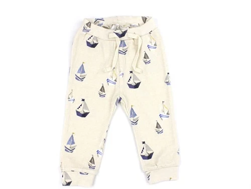 Bløde bukser i farven peyote melange med sejlbådprint fra Name It.