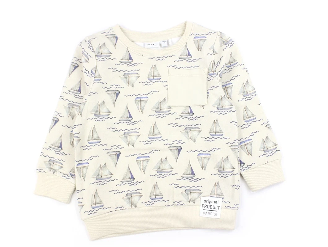 Sweatbluse med sejlbåde i farven peyote melange fra Name It.