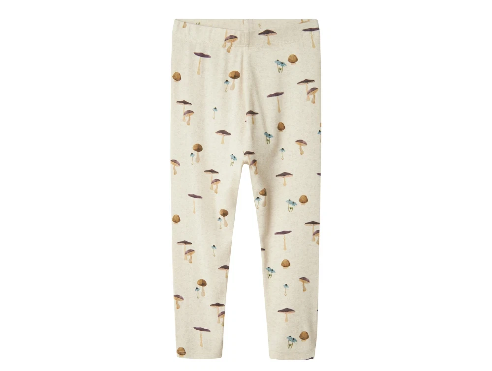 Leggings i farven peyote melange med svampeprint fra Name It.