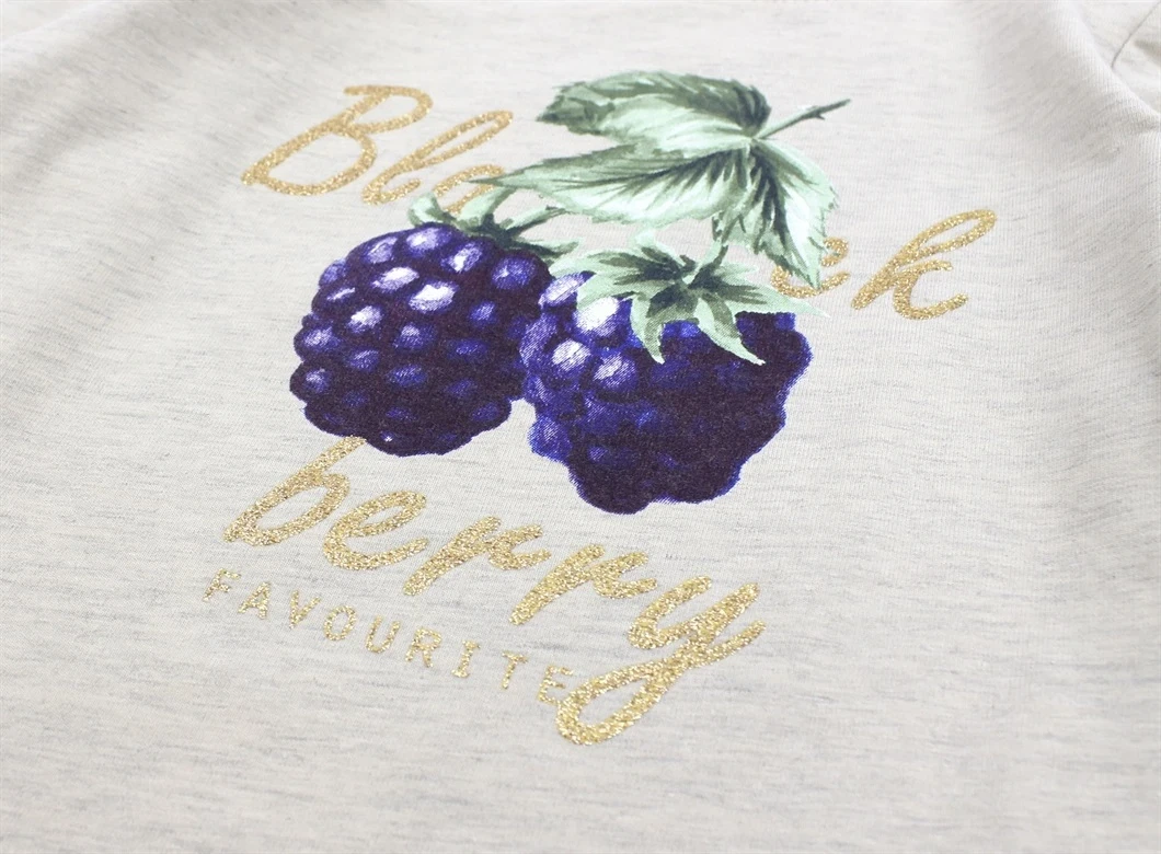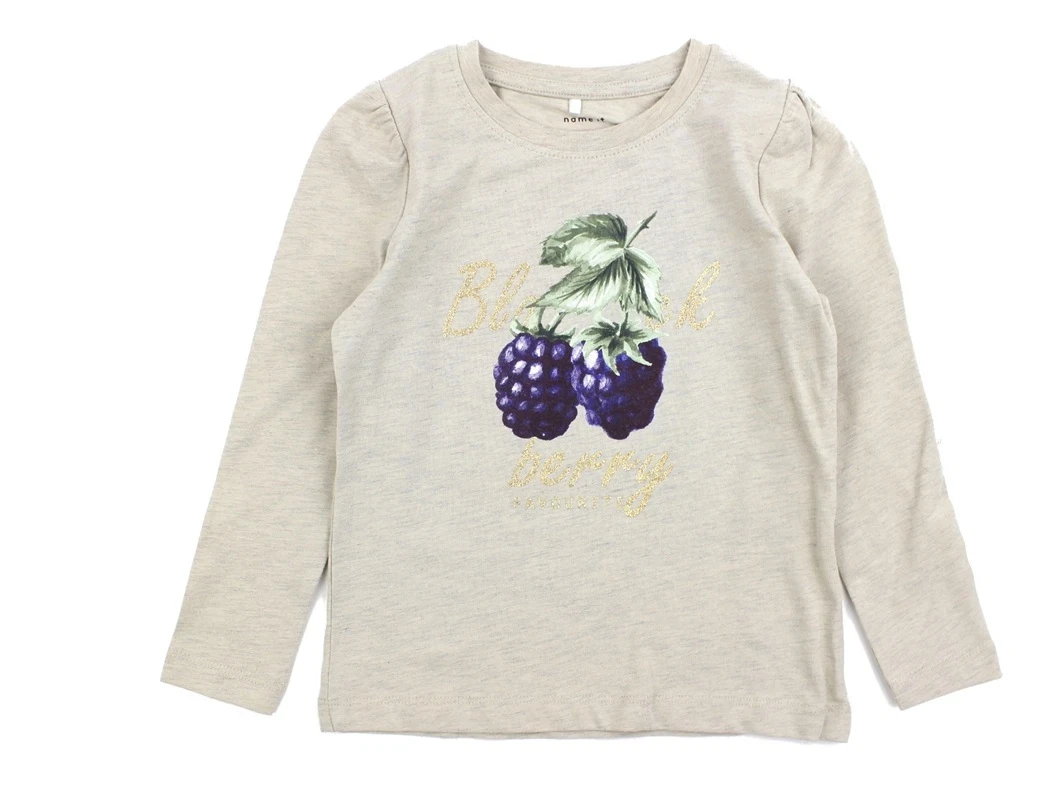 Langærmet top i farven peyote melange med bærprint og glimmer fra Name It.